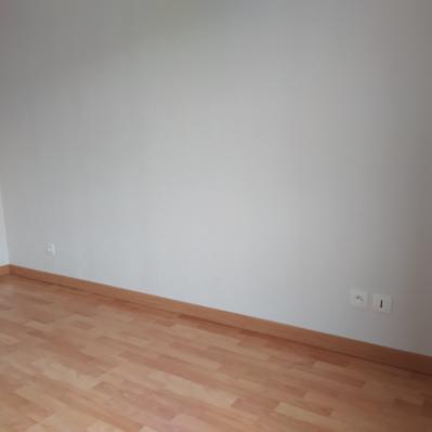 Plafond repeint en blanc et murs refaits en tapisserie papier blanc.